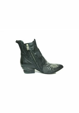 Schöne Damen Stiefeletten von A.S. 98 aus einem feinen hochwertigem geprägten Glattleder. Innen ist der Schuh mit einem cromfrei gegerbtem Leder ausgestattet. Der Schuh hat eine normale Weite. Der Trotteurabsatz hat eine Höhe von cirka 2 cm. Die Laufsohle ist aus Gummi. Die Schaftweite fällt normal aus (M-Schaft). Die Schuhgröße fällt regulär aus.