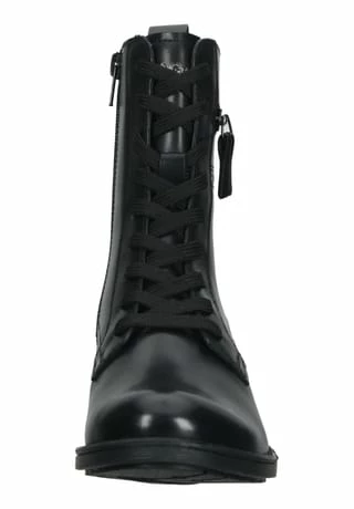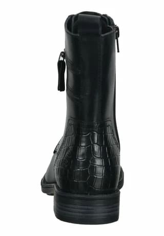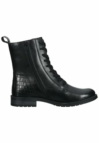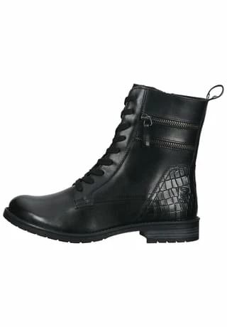 Neuer Lieblingsschuh gesucht? Mit dieser klassischen Stiefelette von Bagatt ist genau der richtige Begleiter gefunden! Nappaleder zeigt sich als Obermaterial gleich von seiner besten Seite, denn es lässt sich leicht reinigen und verleiht dem Damenschuh eine angesagte Optik. Einen tollen Eyecatcher liefert die Kroko-Optik im Fersenbereich, verbunden mit zwei Dekoreißverschlüssen. Das Innenmaterial ist aus Textil gefertigt, so wird der Fuß sanft umschlossen und auch an langen Tagen bequem gebettet. In puncto Funktionalität bietet dieser Schuh mit einer Schnürung und einem Reißverschluss maximale Flexibilität.