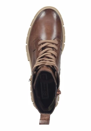 Modische Schnürstiefelette von Bugatti aus hochwertigem Nappaleder. Der Reißverschluss am Schaft ermöglicht einen leichten Einstieg und optimale Flexibilität. Das Design wird toll in Szene gesetzt mit der Krokooptik im Fersenbereich und den aufgesetzten Deko Reißverschlüssen. Ob zum Rock oder zur Jeans getragen – mit diesem Schuh legst du im Herbst/Winter einen tollen Auftritt hin.
