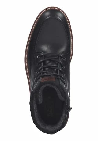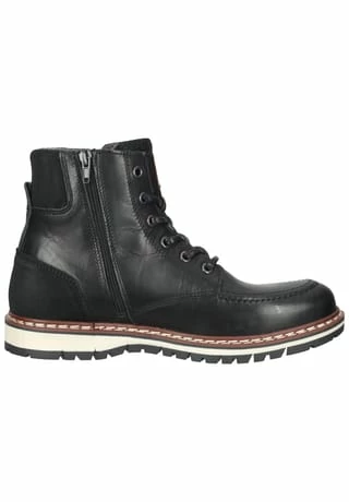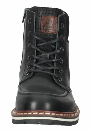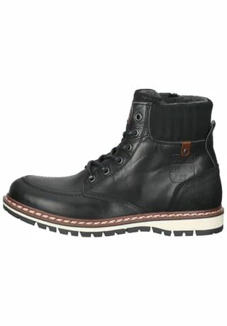Schöne Damen Stiefeletten von Bullboxer aus einem feinen hochwertigem Glattleder. Innen ist der Schuh mit einer hochwertigen Wolle ausgestattet. Der Schuh hat eine normale Weite. Der Keilabsatz hat eine Höhe von cirka Die Laufsohle ist aus Gummi.