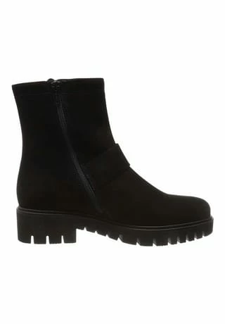 Schöne Damen Stiefeletten von Gabor aus einem feinen hochwertigem Veloursleder. Innen ist der Schuh mit einem hochwertigem Kunstfell ausgestattet. Der Schuh hat eine normale Weite. Der stabile Blockabsatz hat eine Höhe von cirka 3 cm. Die Laufsohle ist aus Gummi. Der praktische Reißverschluss ist ideal zum einfachen an- und ausziehen. Die Schaftweite fällt normal aus (M-Schaft). Die Schuhgröße fällt regulär aus.