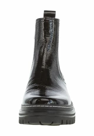 Obermaterial aus Lackleder verleiht glänzende Optik