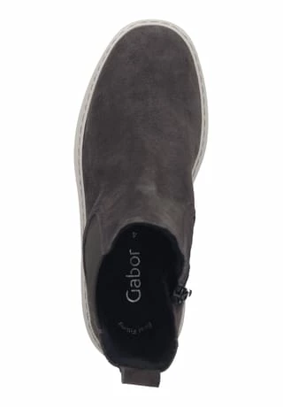 Diese komfortable und stilvolle Stiefelette von Gabor stellt den perfekten Begleiter durch den Alltag dar. Der Schuh aus hochwertigem Veloursleder überzeugt auf ganzer Linie durch sein schlichtes Auftreten. Kontrastreich abgesetzte ist die robuste Sohle ein absoluter Blickfang! Durch den Reißverschluss ist er im Nu an- und ausgezogen und der elastische Einsatz am Schaft sorgt für die perfekte Passform. Die Ausstattung mit Best-Fitting bringt eine breitere Auftrittsfläche und höchste Bequemlichkeit mit sich. Die gepolsterte Decksohle lässt sich bei Bedarf herausnehmen und wechseln.