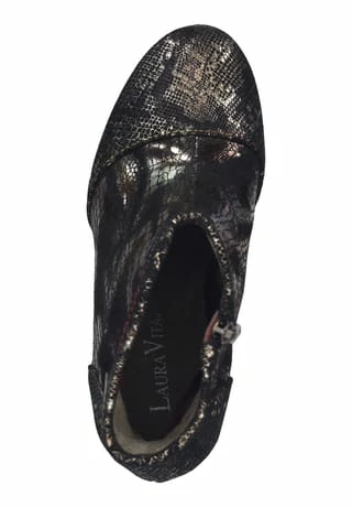 Mit dieser modischen Stiefelette von Laura Vita sind sicherlich alle Blicke auf die Trägerin gerichtet, denn diese schicke Stiefelette macht jedes noch so schlichte Outfit zu einem Hingucker. Das weiche Lederfußbett sorgt für ein angenehmes Tragegefühl. Besonders praktisch ist auch der Reißverschluss, der ein einfaches und müheloses Hineinschlüpfen ermöglicht und für den optimalen Sitz am Fuß sorgt.
