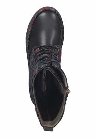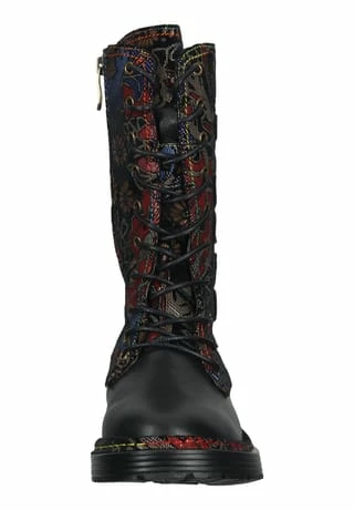 Mit diesem modischen Stiefel von Laura Vita sind sicherlich alle Blicke auf die Trägerin gerichtet, denn dieser schicke Stiefel macht jedes noch so schlichte Outfit zu einem Hingucker. Der Stiefel zeigt sich in einem wundervollen Look mit Blumenapplikationen und bunten Nähten. Die weiche Decksohle sorgt für ein angenehmes Tragegefühl. Besonders praktisch ist auch der seitliche Reißverschluss, der ein einfaches und müheloses Hineinschlüpfen ermöglicht und zusammen mit der Schnürung für den optimalen Sitz am Fuß sorgt.