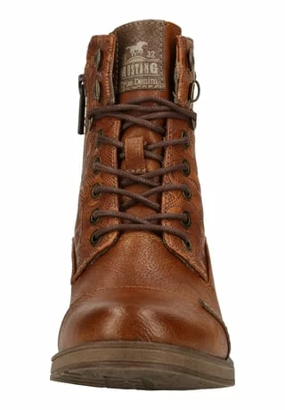 Wer seinen Füßen etwas Gutes tun möchte, greift am besten zu dieser Schnürstiefelette von Mustang! Ein schönes Design und einen hohen Komfort bietet die Verarbeitung des Obermaterials aus Lederimitat. Im Inneren findet sich eine weiche Textilausstattung ( 100% Polyester), die zum Wohlfühlen einlädt. Als Verschluss dient ein praktischer Reißverschluss und Schnürung, der einen schnellen Einstieg ermöglicht.