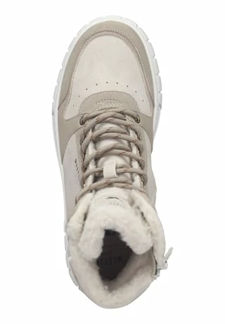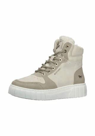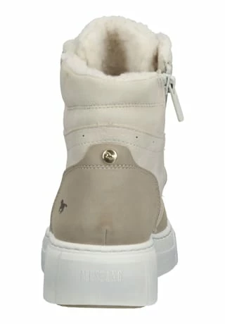 Stylish-bequemer und moderner Schnürboot von Mustang mit Warmfutter aus Teddyfell und gepolsterter Decksohle, der zu einer Vielzahl an Outfits kombiniert werden kann. Einher kommt dieser angesagte Schuh mit Reißverschluss und dezentem Layer-Look.