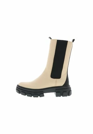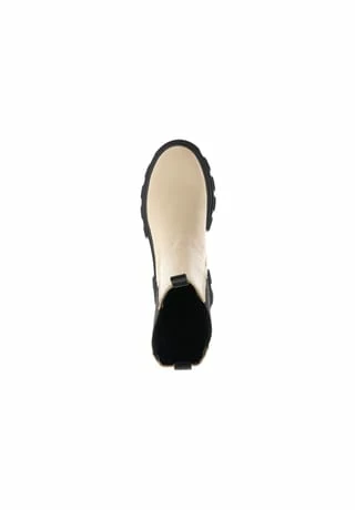Klassische Chelsea Boots für verschiedene Looks. Ob zur Hose oder zu einem Rock – diese Boots passen einfach dazu. Das Obermaterial aus echtem Glattleder und die Stretcheinsätze auf der Innen- und Außenseite unterstreichen den perfekten Look der Boots. Die beiden Laschen an der Vorder- und Rückseite des Schafts, ermöglichen ein einfaches Aus- und Anziehen. Der Blockabsatz und das Plateau verbindet einen hohen Tragekomfort mit eine stilvollen Auftreten.