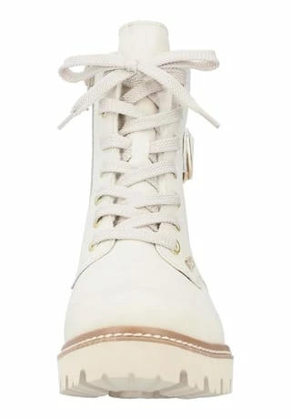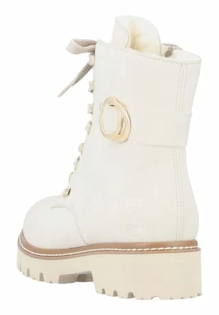 Modische Schnürstiefelette aus Lederimitat von Rieker. Dank der Schnürung lässt sich das Modell flexibel an den Fuß anpassen und der zusätzliche Reißverschluss erleichtert das An- und Ausziehen. Die Deko Schnalle am Schaft macht diesen Schuh zum absoluten Hingucker, der in keinem Schrank fehlen darf.