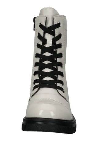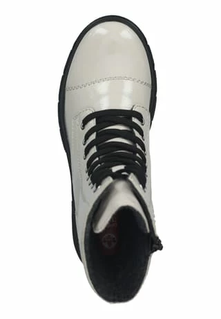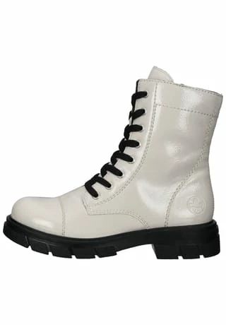 Modern und komfortabel – so präsentiert sich diese tolle Schnürstiefelette von Rieker. Mit einem Obermaterial aus Lederimitat in Lackoptik wird der Damenschuh gekonnt in Szene gesetzt und überzeugt auf Anhieb. Die Decksohle und das weiche Innenmaterial aus Textil sorgt für wahre Wohlfühlmomente, denn sie halten die Füße bei frostigen Temperaturen angenehm warm. Zusätzlich zur Schnürung verfügt die Stiefelette über einen Reißverschluss an der Seitenpartie für erleichterten Ein- und Ausstieg.