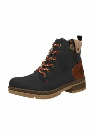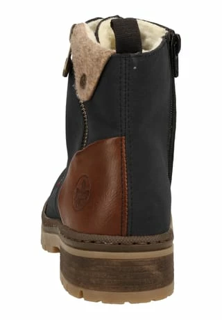 Schöne Damen Stiefeletten von Rieker aus einem hochwertigem Synthetikmaterial. Innen ist der Schuh mit einem hochwertigem Kunstfell ausgestattet. Der stabile Blockabsatz hat eine Höhe von cirka 4 cm. Die Laufsohle ist aus Krepp. Der praktische Reißverschluss ist ideal zum einfachen an- und ausziehen. Die Schuhgröße fällt regulär aus.
