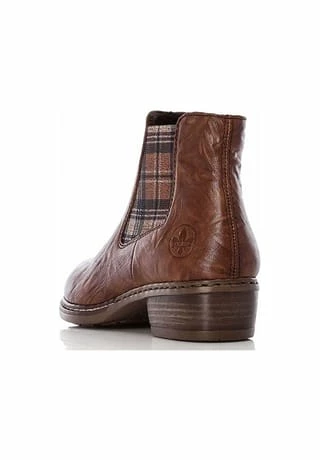 Schöne Damen Stiefeletten von Rieker aus angenehm weichem und hochertigem Leder. Innen ist der Schuh mit Kunstleder augestattet. Der stabile Blockabsatz hat eine Höhe von cirka 3 cm. Die Laufsohle ist aus Krepp. Der praktische Reißverschluss ist ideal zum einfachen an- und ausziehen.