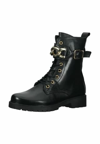 Dank dieser stilvollen und modischen Schnürstiefelette aus hochwertigem Leder von Scapa ist dir der bewundernde Blick deiner Mitmenschen sicher. Der schlichte Schuh wird durch den feinen Riemen mit Ketten-Dekor toll in Szene gesetzt. Durch die Schnürung lässt sich der Schuh perfekt an den Fuß anpassen und der zusätzliche Reißverschluss an der Seite ermöglicht ein schnelles An- und Ausziehen. Ob zum Kleid, zum Rock oder zur Jeans, diese Stiefelette rundet jeden Look perfekt ab, bestimmt werden Sie diesen trendigen Schuh ganz schnell ins Herz schließen.
