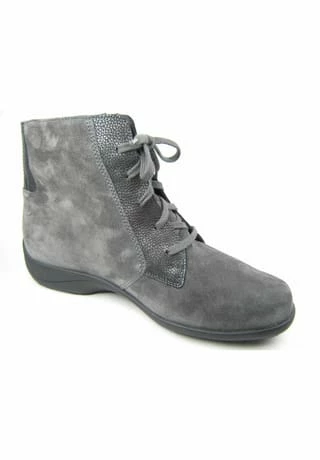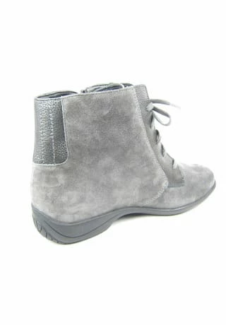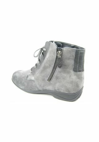 Schöne Damen Stiefeletten von Solidus aus einem feinen hochwertigem Nubukleder. Innen ist der Schuh mit einem cromfrei gegerbtem Leder ausgestattet. Der Schuh hat eine normale Weite. Der Absatz ist durchgehend flach. Die Laufsohle ist aus Gummi. Der praktische Reißverschluss ist ideal zum einfachen an- und ausziehen. Die Schuhgröße fällt regulär aus.