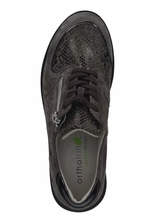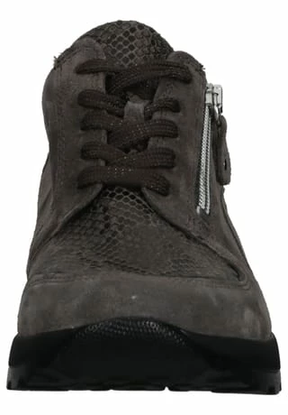 Ein einziges Mal getragen, möchte man diesen bequemen und modischen Sneaker von Waldläufer am liebsten gar nicht mehr ausziehen. Der sportliche Schuh kommt mit hochwertigem Leder in einem dezenten Layer-Look daher. Ein schöner Blickfang ist bei diesem Schuh der modische Animal-Print. Für die perfekte Passform sorgt die schlichte Schnürung und der Reißverschluss zusätzlich für ein komfortables An- und Ausziehen. Die gepolsterte Decksohle kann bei Bedarf herausgenommen und gewechselt werden.