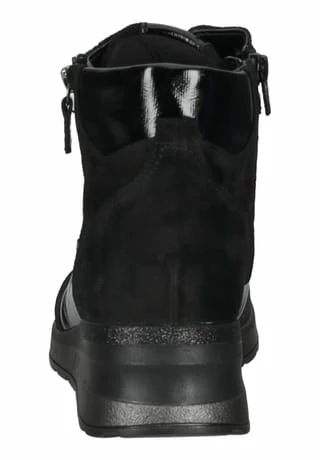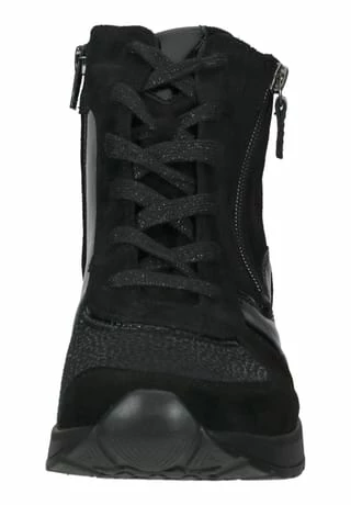 Super bequem und alltagstauglich ist diese Schnürstiefelette mit Elementen in Lackoptik von Waldläufer. Ob für lange ausgiebige Spaziergänge oder auch im Büro getragen, werden Sie diese Schuhe aus einem Leder- und Textilmix vom ersten Moment an begeistern. Ein zusätzlicher Reißverschluss ermöglicht mehr Spielraum beim Ein- und Ausstieg aus diesem Schuh. Außerdem kann das Fußbett entnommen und durch eigene Einlagen ersetzt werden.